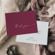 Diese moderne Aquarell-Koordinate Rot-Dankeschön-Karte ist perfekt für eine stilvolle zeitgenössische Hochzeit. Das schlichte bordeauxrote und weiße Design zeichnet sich durch eine einzigartige industrielle Schrift mit modernem boho Stil aus. Anpassbar in jeder Farbe. Behalt das Design minimal und elegant, wie es ist, oder personalisiere es durch Hinzufügen von eigenen Grafiken und Kunstwerken. Personalisieren Sie die Rückseite der Karte mit Ihren Namen, und eine Dankeschön-Nachricht. Alternativ können Sie den Bereich Dankeschön Meldungsvorlage leer verlassen werden, um eine personalisierte Notiz auf jeder Karte nach ihrer Ankunft zu schreiben. Diese Karten können für eine Hochzeit, ein Brautparty oder eine besondere Veranstaltung verwendet werden.