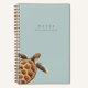 Ein modernes personalisiertes Notizbuch mit Meeresmotiven und Aquarellbildern einer Meeresschildkröte auf einem grünen Meeresgrund. Personalisieren Sie Ihren Namen im braunen Serif-Schriftart. Ein idealer Ort für alle, die das Leben im Meer lieben