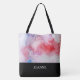 Moderner Spritzer in Aquarellfarbe, Rot, Rosa, Blau. Individueller Text: Mutter der Braut, Hochzeitstasche, persönlicher Name auf der Rückseite. Sie können den Text an der Vorderseite in "Bridesmaid, Made of Honor etc." ändern und einen Namen an der Rückseite hinzufügen.