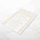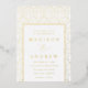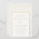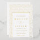 Elegante, kunstvolle Deko-Hochzeitseinladung mit einem goldenen Bogenmuster mit weißem Hintergrund. Personalisieren Sie die modernen Hochzeitseinladungen mit Ihren Namen und Hochzeitsdetails in Goldfolienschrift.