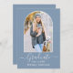 Modern Arch Foto Frame - Trendy Calligraphy Script - Foto Graduation Party Invitation Card - Dusty Blue Background