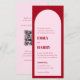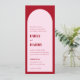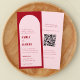 Diese moderne Bogeneinladung besticht durch fette Typografie. Das Design ist rosa und rot, farblich blockiert. Auf der Rückseite befindet sich ein QR-Code, der diese Einladung ganz einfach macht. Elegant und einfach.
