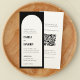 Diese moderne Bogeneinladung besticht durch fette Typografie. Das Design ist schwarz-weiß. Auf der Rückseite befindet sich ein QR-Code, der diese Einladung ganz einfach macht. Elegant und einfach.