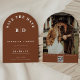 Moderne Arch Terracotta Wedding Save The Date Card Arch Terracotta Monogramme Hochzeit speichern die Datumskarte mit einer Bogenüberschrift, Monogrammen und dem Foto und QR-Code auf der Rückseite. Ideal für jemanden, der Save the Date nach einem gewölbten Gewölbe sucht.
