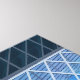 Das Bild zeigt ein modernes architektonisches Design mit einem markanten, gläsernen Gebäude mit einem charakteristischen, rautenförmigen Muster. Die Fassade des Gebäude wird von einem geometrischen Gitter blauer Glaspaneele dominiert, was einen bemerkenswerten visuellen Effekt erzeugt. Die Struktur liegt inmitten anderer großer Gebäude, was auf eine urbane Umgebung hindeutet.
