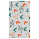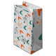 Diese Geschenktasche hat ein modernes atomares Design von Bumerangformen, Antennen und Sternexplosionen in aquamarin, orange.