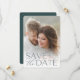 Mit diesem eleganten und modernen Foto können Sie Ihr Hochzeitstag in unvergesslichem Stil verkünden und die Dattelkarten speichern. Das Foto ist voll blass- oder porträtorientiert und liegt "Save the Date" in waldgrünen Schriftzeichen am unteren Ende. Ihre Namen, Hochzeitstag und Hochzeitsort erscheinen in modernen Schriften. Personalisieren Sie den Rücken mit weiteren Details, wie z.B. Ihre Hochzeitswebsite.
