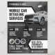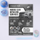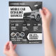 Von der Autoindustrie inspiriertes Design mit Grafik für Autowäsche und -detailing. Ideal für mobile Autodetailing-Dienste, Autowaschunternehmen, Autoreinigungs-Shops und Autopflege-Profis. Enthält Dienstleistungen und Preisliste mit Werbetext für Rabatte, Sonderangebote und mehr. Das vorhandene Logo im Design kann verwendet oder durch ein gewünschtes ersetzt werden.