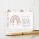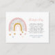 Diese Süßkarte wurde entwickelt, um sich mit unserer modernen Baby-Dusche Sprinkle Hearts Baby Duwer Suite abzustimmen. Sie enthält eine niedliche Vers, die für Bücher für das Baby frage, wobei die Mutter das Fälligkeitsdatum hat, und ist mit einem Aquarellregenbogen und Herz dekoriert. Die Rückseite der Karte weist ein koordinierendes Regenbogenmuster auf. Copyright Elegant Invites, alle Rechte vorbehalten.