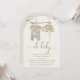Moderne Arched Baby Clothes Baby Shower Einladung Sweet und moderne Babydusche Einladung in einem böhmischen Stil mit einer Bundting Fahne, Babykleidung und verschiedenen dekorativen Spielzeug. Diese geschlechtssonde 4-Babydusche-Einladung enthält auch eine moderne Kalligraphie-Bildüberschrift.