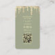 Moderne Bäckerei Patisserie Sage Gold Whisk Tropfen Visitenkarte mit QR Code. Exklusiv für Bäckereien, Konditoreien, Tortendekoratoren, Koch und Caterer gefertigt, verfügt das Hotel über eine schöne Schrift mit Goldflüßchen. Ihr Link wird automatisch in einen eindeutigen QR-Code konvertiert oder einfach gelöscht, um den qr-Code über das EDIT DESIGN-Tool zu entfernen. Sie können ihn nach Ihren Vorlieben ändern