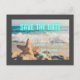 Moderne, nicht-traditionelle Ankündigung Datum freihalten mit Strandszene (mit Wellen und Seestern im Sand) fotografieren Hintergrund mit Save the Date in aquablau Neon. Dunkelgraue Grenze, Personalisieren Sie mit den Details des Ehepaares.