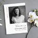 Mit unserem Personalisierten Foto Dankeschön und Dankeschön zum Beerdigungsdenkmal - Beileid Dankeschön. Dieses moderne und minimalistische Design ist der perfekte Weg, um herzlichen Dank an Ihre Freunde und Familie in dieser schwierigen Zeit zu senden. Die Karte verfügt über ein individuelles Foto, mit dem Sie einen besonderen Augenblick oder eine wertvolle Erinnerung an Ihren Liebsten präsentieren können. Der elegante Script-Schriftart fügt eine Touch von Eleganz hinzu und Set den Ton für eine nachdenkliche und herzliche Botschaft. Die Karte ist eine wunderschöne und sinnvolle Möglichkeit, um Ihnen für die Freundlichkeit, Liebe und Unterstützung, die Sie während Ihrer Trauer erhalten haben, zu danken. In liebevoller Erinnerung an Ihren verstorbenen Lieben ist diese Karte eine herzliche Anerkennung und Erinnerung. Zeigen Sie Ihre Dankbarkeit mit diesem personalisierten und nachdenklichen Dankeschön-Karte.