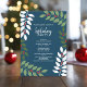 Eine Einladung, die für eine Feier oder ein offenes Haus genutzt werden kann. Es ist stilvoll genug, um für Ihre Firmenveranstaltungen oder für ein Party in einem Ferienhaus zu nutzen. Das moderne, abstrakte Design umfasst Eukalyptuszweige, Beeren und Sans Serif für den Hauptteil des Textes. Der Gruß ist in einer rustikalen modernen Schrift. Auf der Rückseite befindet sich ein Eukalyptusmuster in Grüntöne und Pastellkorallenrosa.