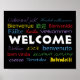 Ein lustiges Design des Wortes willkommen in Englisch, umgeben von dem Wort willkommen in anderen Sprachen wie Französisch, Deutsch, Spanisch und mehr!