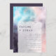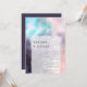 Moderne und raffinierte Hochzeitsvorlagenkarte mit gemalten Leinwand mit Pinselstrichen in lila, türkisblau und rosa. Diese abstrakte Kunsteinladung ist so stilvoll und doch einfach! Der Fokus liegt auf den Namen der Paare. Einfach anpassbar online.