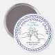 Kleiner runder Kreuzfahrt-Kabinentürmagnet mit moderner Glasillustration, um Ihren Hochzeitstag zu feiern. Design mit Ihren Namen, dem Schiffsnamen, einem Datum oder einem beliebigen Text, den Sie benötigen. Es ist ideal, um in Ihrem Kabine aufzuhängen und kann nach der Reise als Kühlschrankmagnet-Souvenir wiederverwendet werden.