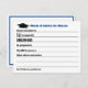 Wow! Können Sie glauben, dass Ihr Sohn oder Ihre Tochter ihren Abschluss machen wird? Feiern Sie mit einer Abschlussfeier und frag Ihren Gästen, diese lustigen Weisheit- oder Ratenkarten für Ihren Abschluss auszufüllen. Moderne Typografie in Schwarz-Weiß-Design. Einfach mit Graduierungskappe. Erstellen Sie eine Sake-Memory-Karte für Ihren Absolvent, um zu helfen, sich an diese wunderbare Zeit in ihrem Leben zu erinnern. Wählen Sie Farben, die Ihren Schulfarben entsprechen.