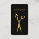 Ein modernes Design mit schwarzen und goldenen Akzenten. Eine minimalistische personalisierte Visitenkarte für Friseursalons, Friseursalons, Schönheitssalons etc. Eine einfache und berufliche Art, Ihr Unternehmen vorzustellen. Personalisieren Sie Ihre Daten, um Ihre eigene Visitenkarte zu erstellen.