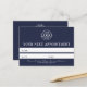 Behalt deinen Kunden mit dieser modernen, maßgeschneiderten Terminkarte pünktlich und organisiert. Mit seinem einfachen Navy Blue Design ist es perfekt für Unternehmen, die ein berufliches, minimalistisches Aussehen bewahren möchten. Personalisieren Sie es mit Ihrem Firmenlogo, Kontaktinformationen und Termininformationen, um eine Markenkarte zu erstellen, die Ihr Unternehmen widerspiegelt. Ideal für kleine Unternehmen und Corporate Branding.