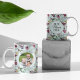 Die moderne Best Mama Ever Mint Floral Hummingbird Coffee Tasse mit handgezeichnet Illustrationen von Kolibris, Hibiskus, exotischen Blume und Pilzen auf elegantem, zartem, gelbem Hintergrund. Eine Seite liest Happy Mother’s Day, während die andere Seite es Ihnen erlaubt, ein benutzerdefiniertes Foto hochzuladen und zwei personalisierte Nachrichten hinzuzufügen. Ein einzigartiges personalisiertes Muttertagsgeschenk und Sake für Mütter, die Kolibris, Blumenmotive und eine individuelle Dekoration der Zuhause Liebe haben.
