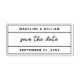 Moderne Bordered Stilvolle Skript Save the Date Selbst Inking Rubber Briefmarke, die leicht zu personalisieren ist. Personalisieren Sie es, indem Sie den Platzhalter-Text durch Ihren Namen und Ihr Datum ersetzen. Für weitere Optionen, wie zum Beispiel den Schriftart zu ändern und seine Größe, klicken Sie auf die Schaltfläche "Anpassen". *Bitte beachten Sie, dass das Zazzle-Wasserzeichen, das in der Zoomvorschau angezeigt wird, NICHT auf dem gedruckten Endprodukt erscheint. © Rosewood and Citrus