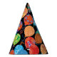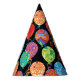 Die lebhaften Ballons mit farbenfrohen Fraktalen in Rot-, Blau-, Orange-, lila- und Grüntönen auf schwarzem Hintergrund machen diese Party-Hüte zu einem Geburtstag.