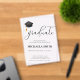 Moderne und schlichte High School Abschluss Acryleinladung mit einer Illustration einer schwarzen Graduierungshülse und eleganter Typografie. Illustriert und entworfen von Patricia Alvarez.