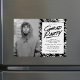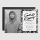 Moderne Magnet-Einladungen mit dem hochstufigen Foto des Absolventen und den Details der Graduiertenparty mit schwarz-weiß gestrichenen Pinselstrichen.