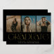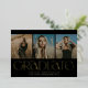 Diese moderne Drei-Foto-Abschluss-Ankündigung zeichnet sich durch elegante Typografie "Graduate" in erhöhter Goldfolie mit drei Fotos auf schwarzem Hintergrund aus. Auf der Rückseite gibt es Einladungstext für Graduierungsparty / Open House, das auch gelöscht werden kann, wenn nicht nötig. Hintergrund- und Textfarben sind individuell einstellbar. Dieses schlichte und dennoch elegante Design erlaubt es Ihren Fotos, durch den minimalen behalt der Details zu glänzen.