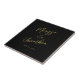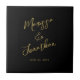 Diese personalisierte, moderne Hochzeitskachel zeigt die Namen der Braut und der Zelter und das Hochzeitsdatum in handgeschriebenen Imitaten Goldschrift auf einem einfachen schwarzen Hintergrund. Ein einzigartiges Geschenk für frisch verheiratete Kinder. Entworfen von Susan Coffey.