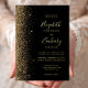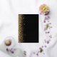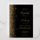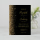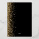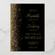 Die links Kulisse dieser modernen Hochzeitseinladung besticht durch ein goldenes Imitat-Glitzer-Design. Der anpassbare Text kombiniert handgeschriebene Goldfolie, Kupferplatte und kursiv Schriftart auf schwarzem Hintergrund. Die Rückseite weist ein passendes Schwarz-Gold-Glitzer-Design auf.