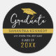 Feiern Sie Ihren Absolventen stilvoll mit diesem modernen Aufkleber in Schwarz und Gold, mit einem eleganten Drehbuch "Graduate", einer schlanken Graduiertenmütze und einem anpassbaren Text für den Namen, die Schule und das Klassenjahr des Absolventen. Perfekt für die Abdichtung von Einladungen, die Dekoration von Gefälligkeiten oder eine personalisierte Touch der Dekoration des Party. Ein elegantes und zeitloses Design für jede Highschool oder Uni-Abschluß Feier.