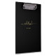 Moderne Black Gold Monogram Chic Girly Script Name Clipboard. Dieses elegante mit Monogramm Clipboard-Design mit Ihrem Namen in stilvoller und trendiger Schrift-Typografie. Perfektes Geschenk für sie.