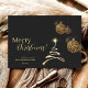 Die moderne schwarze Ferienkarte ist der perfekte Gruß für Ihren Urlaub. Das moderne klassische Design besticht durch extravagante Wirbel und skurrile Schnörkel mit goldenen Stilelementen. Personalisieren Sie die Vorderseite der Karte Ihren Familiennamen und das Jahr.