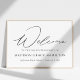 Elegantes Abschluss-Zeichen mit "Welcome" in einem modernen, schwarzen Kalligrafieschrift mit weißem Hintergrund (oder einer beliebigen Farbe). Personalisieren Sie das moderne Abschluss-Poster, indem Sie den Namen, den Namen der Schule und das Abschluss Jahr. Das Schwarz-Weiß-Abschluss-Schild eignet sich sowohl für Absolventen der Highschool als auch für Absolventen der Uni.
