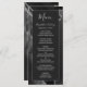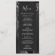 Dieses elegante, moderne Hochzeitsmenü besticht durch einen schwarzen Aquarellhintergrund mit silberfarbenem Imitat-Glitzer. Der Text erscheint in elegantem silbergrauem handgeschriebenem und kopperplate-Schriftart auf einem schwarzen Rechteck. Das agate Design wird auf der Rückseite wiederholt.