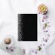 Die links Kulisse dieser modernen Hochzeitseinladung besticht durch ein silbernes Imitat-Glitzer-Design. Der anpassbare Text kombiniert handgeschriebene Silberfolie, Kupferplatte und kursiv Schriftart auf schwarzem Hintergrund. Auf der Rückseite ist ein passendes Schwarz-Silber-Glitzer-Design erkennbar.