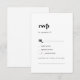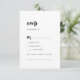 Diese moderne schwarze Typografie Song Anfrage RSVP Karte ist perfekt für eine einfache Hochzeit. Das minimalistisch-schwarz-weiße Design besticht durch einen Retro-zeitgenössischen Schriftart mit einem einzigartigen böhmischen Ambiente. Ideal für jede Jahreszeit. Behalt es minimal, wie es ist, oder fügen Sie Ihre eigenen Grafiken und Kunstwerke. Bauen Sie Ihre Hochzeitsgast-Liste und Ihre Tanzfläche-Liedliste auf einmal! Diese Hochzeitskarte frage den Gästen bequem, ob sie an Ihrer Hochzeit teilnehmen können, und auch, welches Lied sie zum Tanzen bringen wird.