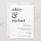Eine schöne, moderne Schwarz-Weiß Ampere und Typografie Hochzeitseinladung! Ein zeitgenössisches Design mit Kleinbuchstaben in einem klassischen Serif-Schriftart in schwarz auf weißem Hintergrund. Die Rückseite der Karte weist eine schwarz-weiße Aquarellstruktur auf. Schlicht, elegant, modern.