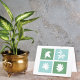 Diese moderne Grußkarte, die mit zeitgenössischen Blatt-Silhouetten geschmückt ist, verleiht Ihren Dankesbekundungen eine Touch der Eleganz. Das Design der Karte ist harmonisch in Grün und Blau gehalten, erinnert an die Ruhe der Natur und ergänzt das botanische Thema. Beim Öffnen der Karte, eine einfache - Danke! - die Nachricht ist drinnen.
