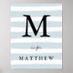Dieses blau gestreifte Poster wäre perfekt in jedem Zimmer oder Kinderzimmer eines kleinen Jungen! Der Hintergrund ist mit Aquarellfarben mit blauen und weißen Streifen dekoriert, und Ihre Monogramm und Ihr Name sind leicht personalisiert. Ein sehr einfaches und stilvolles Aussehen.