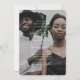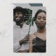 Diese moderne Hochzeitseinladung beinhaltet ein volles Foto mit einem einfachen Typografie-Overlay und einer schönen weißen Kalligraphie-Schrift. Die Rückseite ist ein schöner geometrisch blauer Bogenprint.