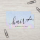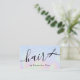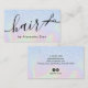Elegante und hübsche Visitenkarte mit Imitaten aus blauem Glitzer, holografischer Textur, Schere und elegantem kalligraphischen Schriftart.
