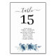 moderne blaue Hochzeitssemble-Tischnummer Tischnummer