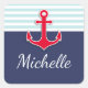 Moderne blaue Minze gestrippt roter Anker Custom Quadratischer Aufkleber