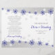 Moderne Schneeflocken in Blau und Weiß und silbergraue Sterne Hochzeitsfeier und Party-Programm mit eleganten blauen Schneeflocken mit weißer Kontur und Sternen auf grauem oder grauem und weißem Hintergrund. Ein ideales Hochzeitsprogramm für eine Hochzeit mit einem Winter- oder Weihnachtsthema im Dezember. Falte es in der Mitte. Wählen Sie nur den Wert aus den verfügbaren Papiertypen aus, da er gut faltet.