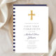 Personalisierte, moderne blaue Streifen kreuzen die erste kommunion Einladung.