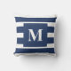 Moderne blaue Streifen mit Monogram-Kissen Kissen