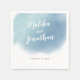 Moderne Hochzeitsserviette mit einer staubblauen und türkisblauen Aquarellfarbe, deren Name im Drehbuch und am Ende der Hochzeitsnacht angegeben ist. Ideal für eine Hochzeit am Meer oder am Strand.